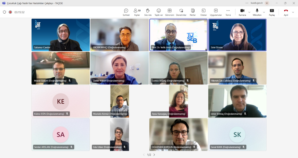 Türkiye Anne, Çocuk ve Ergen Sağlığı Enstitüsü (TAÇESE) tarafından çocukluk döneminde görülen nadir nöromüsküler hastalıklardan Duchenne Musküler Distrofi (DMD) ve Spinal Musküler Atrofi (SMA) alanlarında mevcut durumun değerlendirilmesi, hizmet sunumunda karşılaşılan sorunların ele alınması ve çözüm önerilerinin geliştirilmesi amacıyla 20 Ekim 2025 tarihinde 14.00-17.00 saatleri arasında çevrim içi çalıştay gerçekleştirildi.